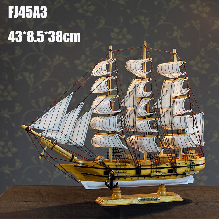 45cm Sailboat Model Wooden Crafts Handmade Sailboat Home Decoration