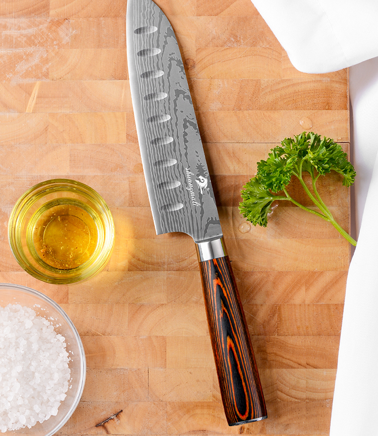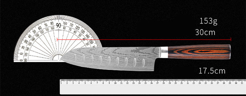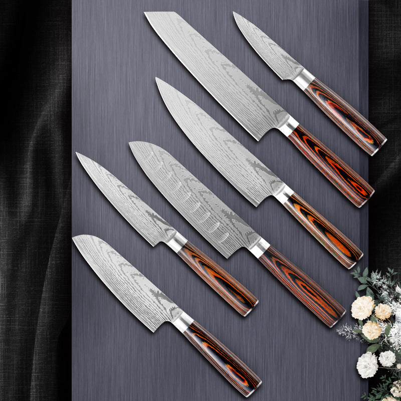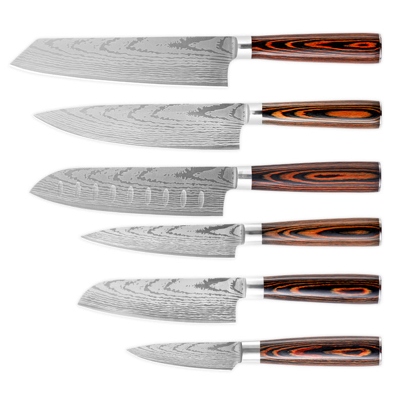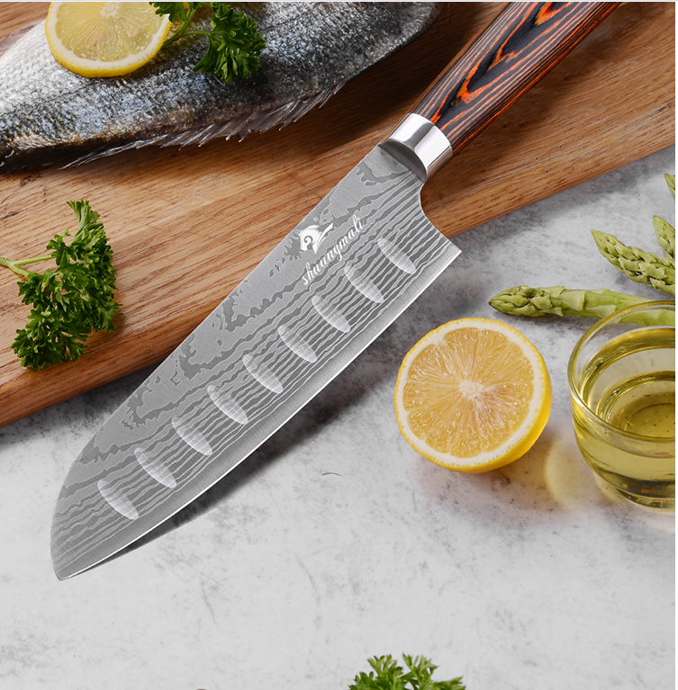 8 Inch Kitchen Knife Imitation Damascus Big Wavy Color Wood Handle 7Cr17 Stainless Steel Knife
