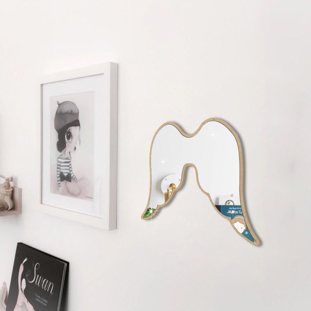 Creative Mirror Stickers Angel Wings Children'S Room Ins Wind Bedroom Wood Grain Wall Stickers