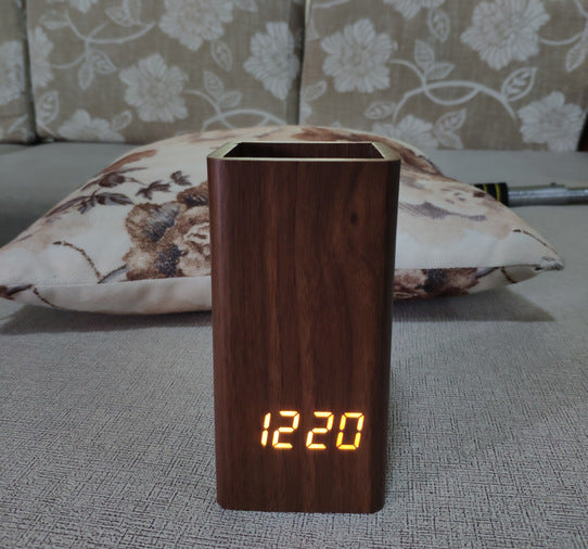 Creative Pen Holder Alarm Office Home Gift Simple Wooden Clock