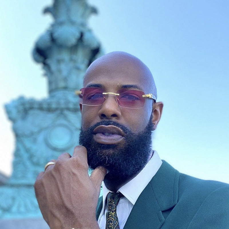 Frameless Trim Wood Grain Legs Sunglasses Men's Ocean Piece