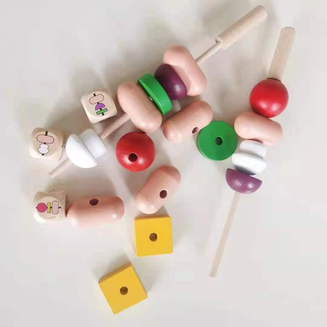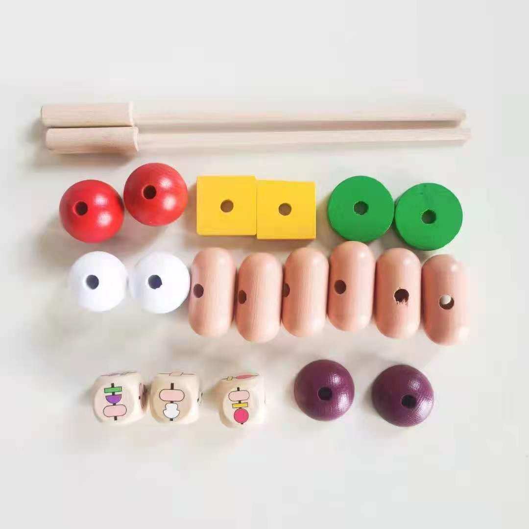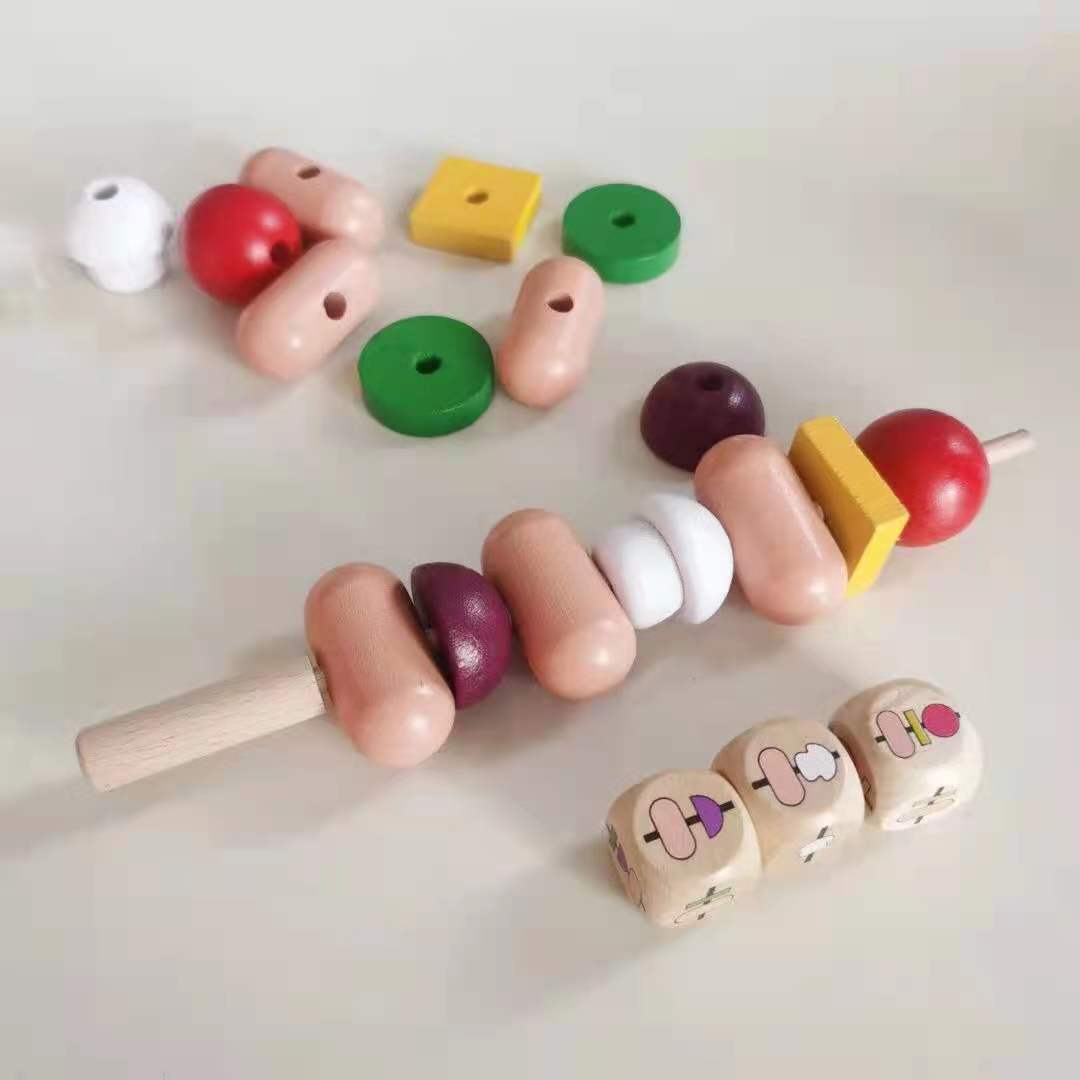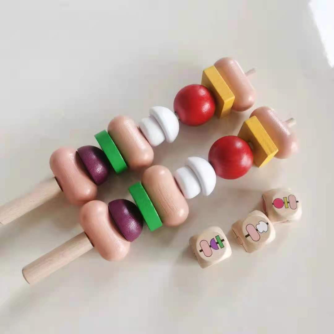 New Children's Wooden Kitchen Buffet Simulation Beaded Barbecue
