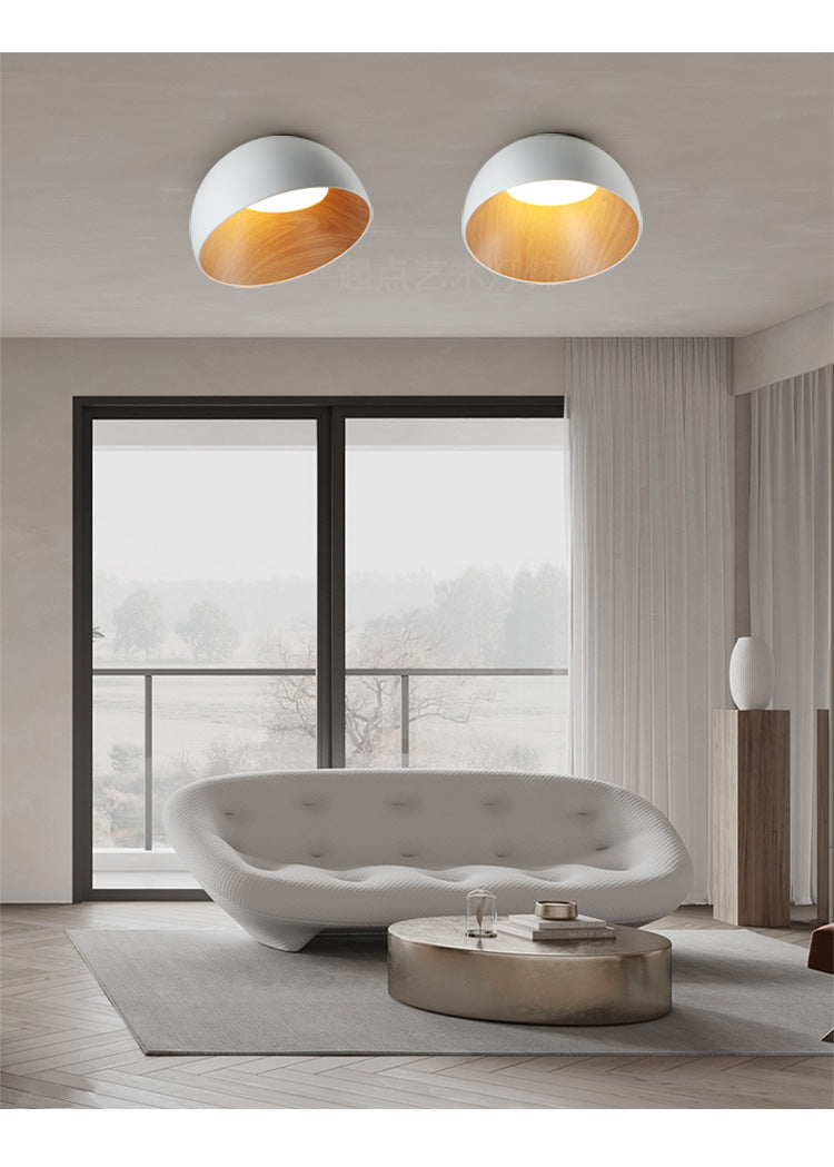 New Round Inclined Wood Grain Ceiling Lamp Nordic Living Room Bedroom Study Simple Nordic Style Lighting Lamps