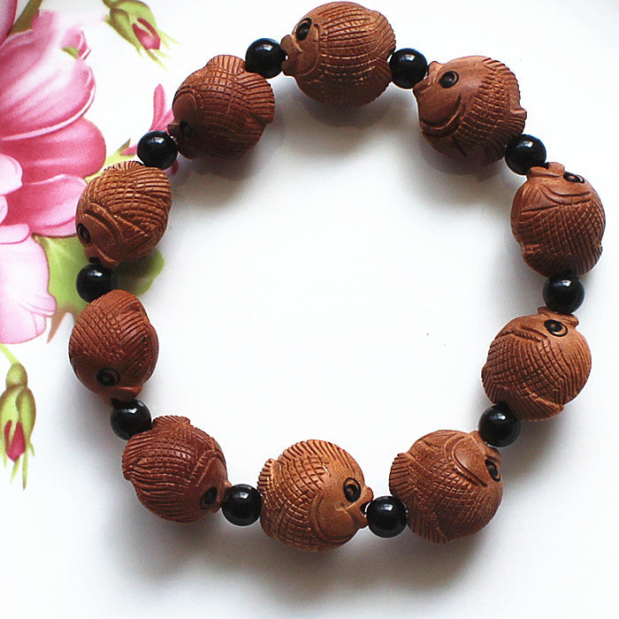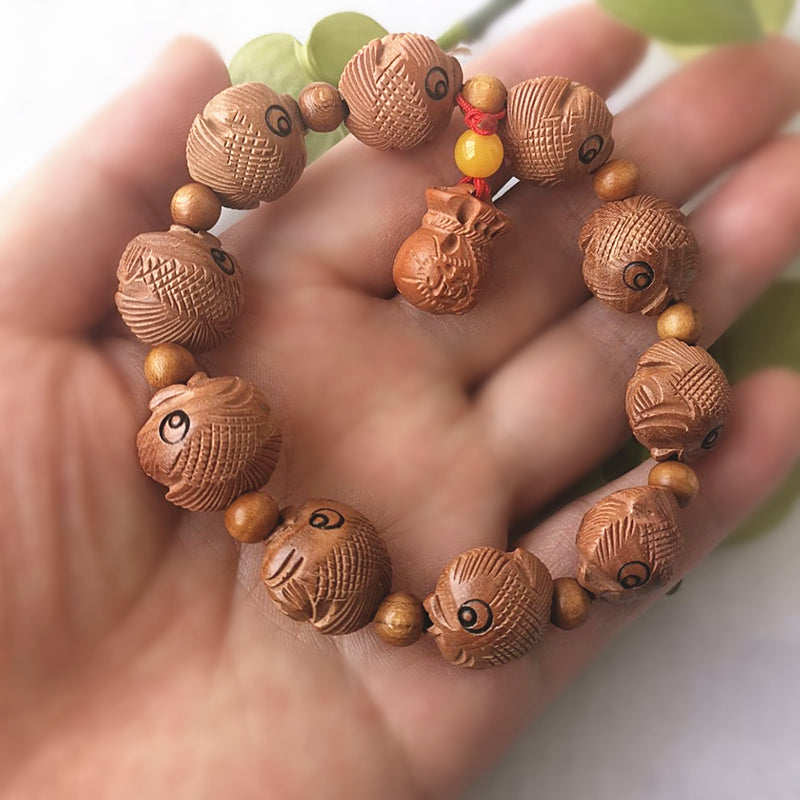 Peach Wood Carving Fish Pendant Portable Solid Wood Bracelet