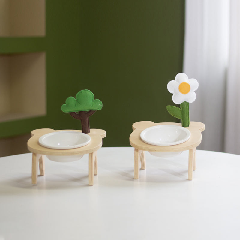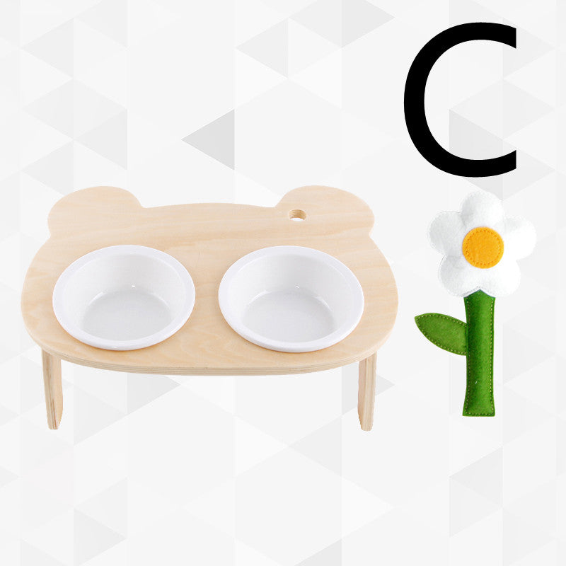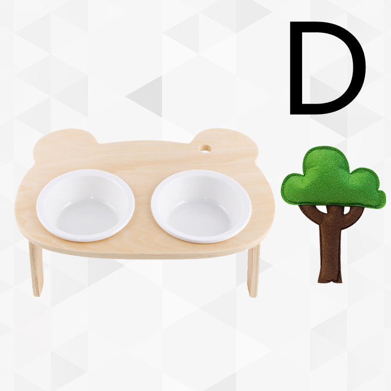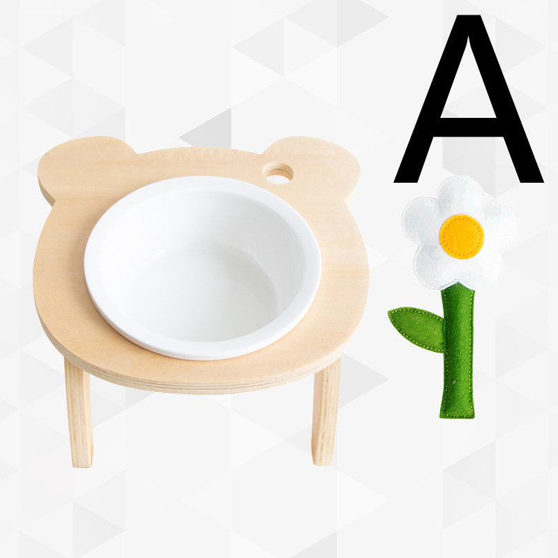 Pet Ceramic Bowl Wooden Stand Tall Cat Bowl Water Bowl