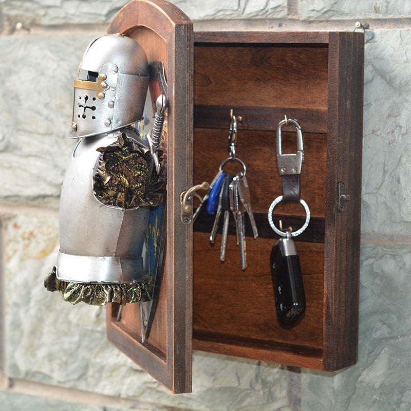 Retro Key Box Home Decoration Wrought Iron Office Wooden Box