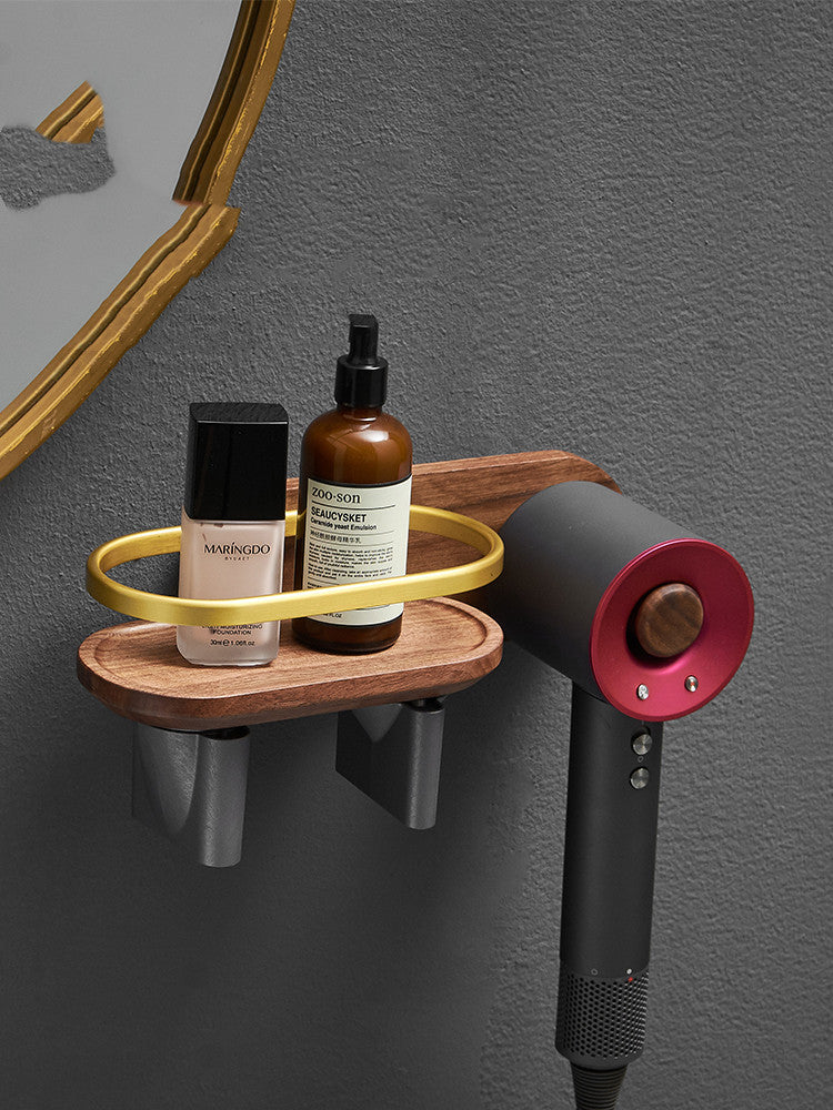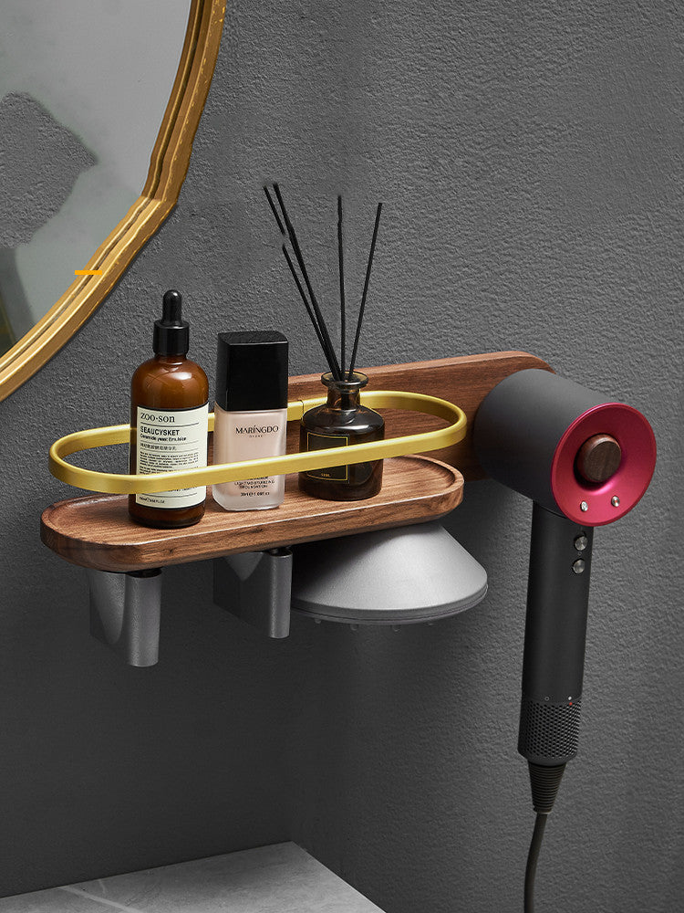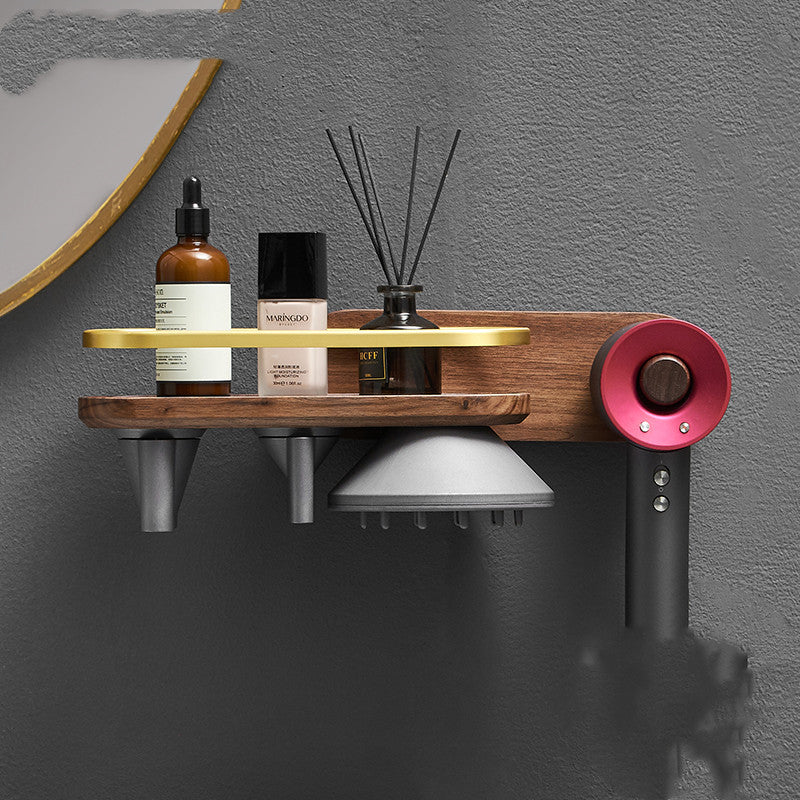 Solid Wood Hair Dryer Shelf Bathroom Storage Free Punching