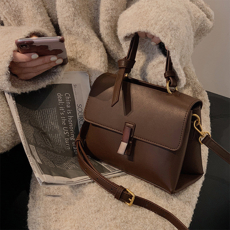 Textured Peach Wood Retro Women's Large Capacity Shoulder Bag