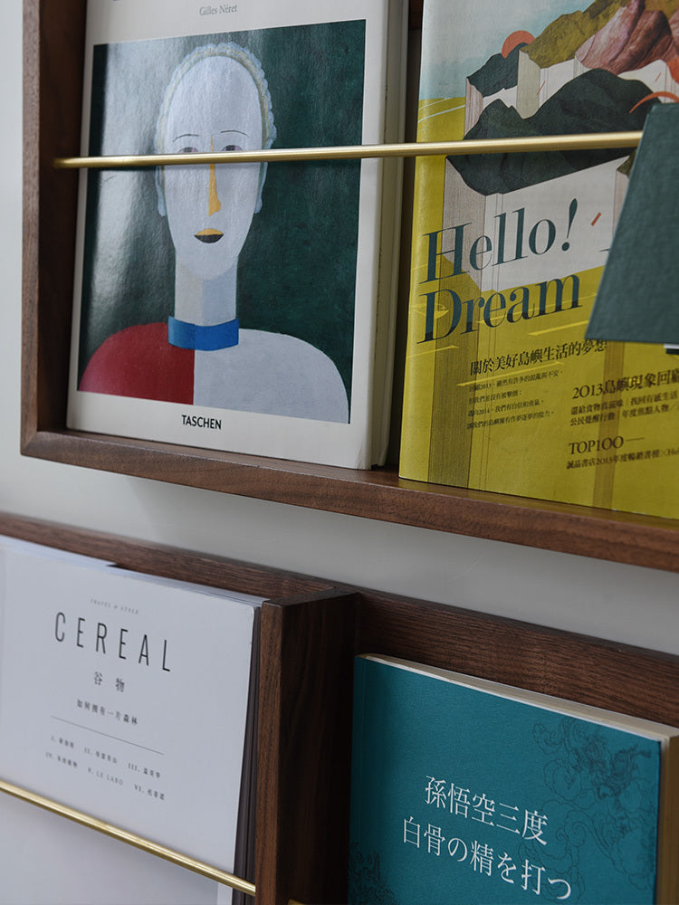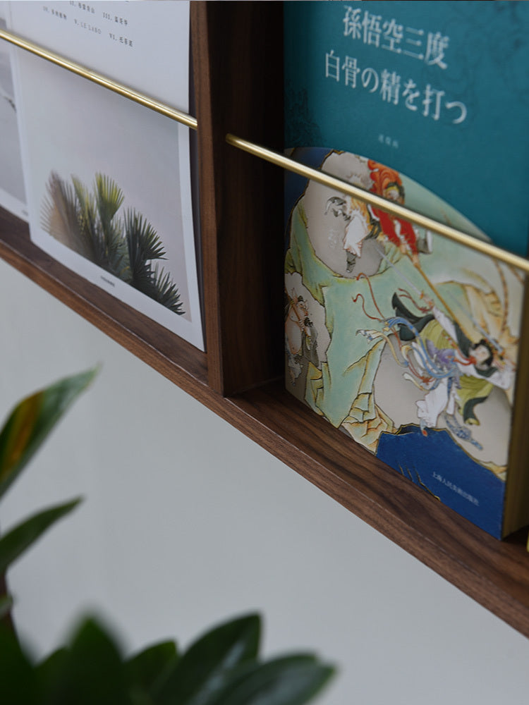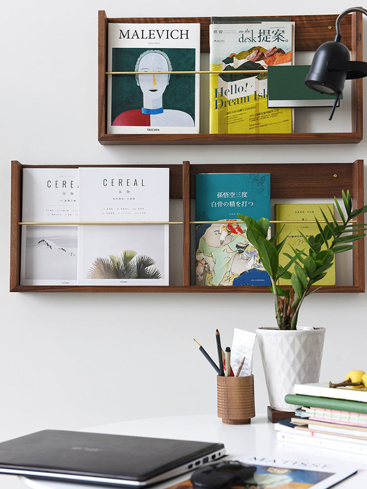 Walnut Brass Magazine Rack Wall Hanging Books And Newspapers