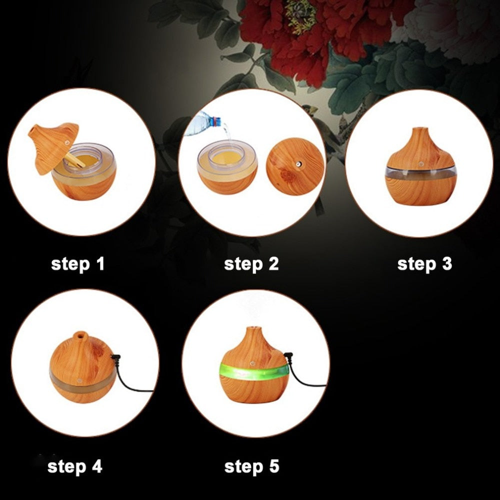 Wood Grain Aromatherapy USB Humidifier Drops Water Air Purification essential oil aroma diffuser Creative home grain