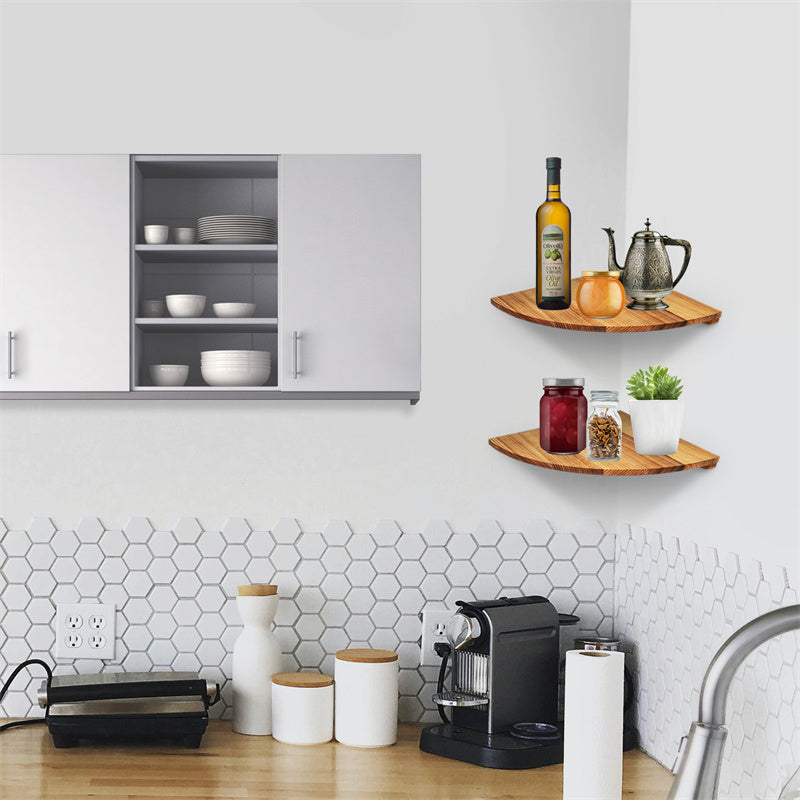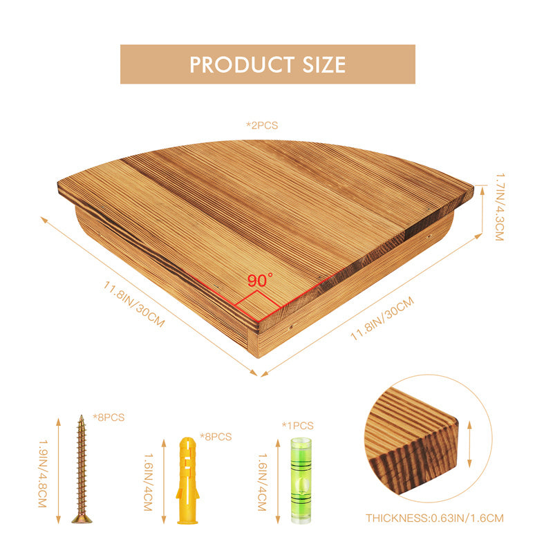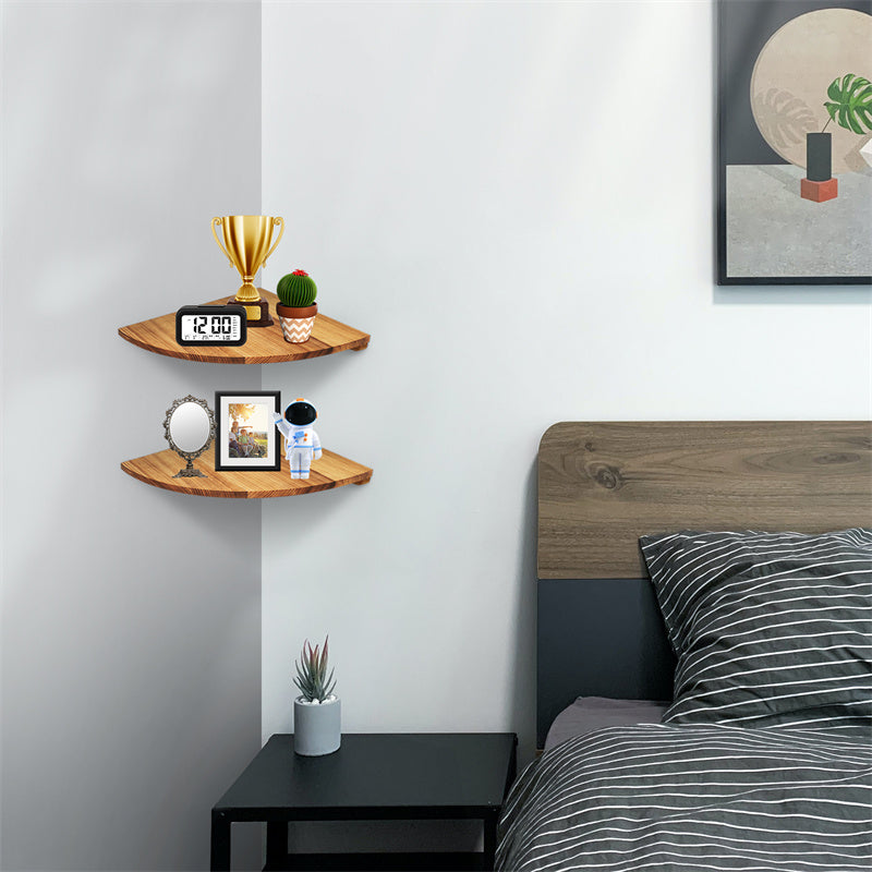 YuPinDiZu Corner Shelf 12inch Solid Wood Floating Shelf Wall Mount 2 Pack Round Edging Hanging Corner Shelves For Wall Floating Speaker Display Bookshelves Decorate Accents For Bedroom Kitchen